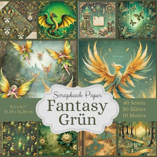 Scrapbook-Papierkollektion "Fantasy Grün": 40 Seiten Bastelpapier: Eine große Auswahl an Fantasy-Motiven in Grün 10 verschiedene Designs: Jedes Motiv ... - Größe: 21,59 x 21,59 cm (8,5 x 8,5 Zoll)
