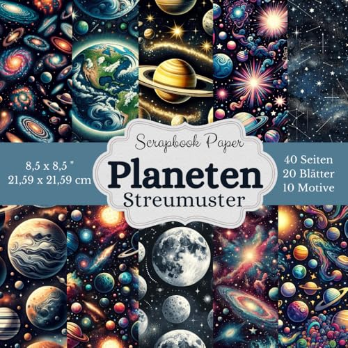 Scrapbook-Papierkollektion mit Planeten, Sternen und Galaxien. Streumuster - Hintergründe: Bastelpapier in 10 verschiedenen Designs mit Planeten, ... Größe: 8,5 x 8,5 Zoll (21,59 x 21,59 cm)