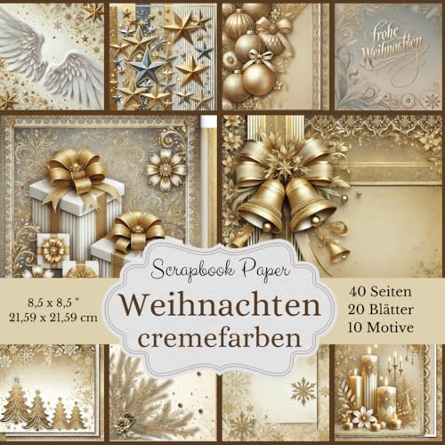 Scrapbook-Papierkollektion: Weihnachten in zarten Creme- und Beigetönen: Elegantes Motivpapier, 40 Seiten, 20 Bastelpapiere (10 verschiedene Designs, ... 2x) Format: 8,5 x 8,5 Zoll (21,59 x 21,59 cm)