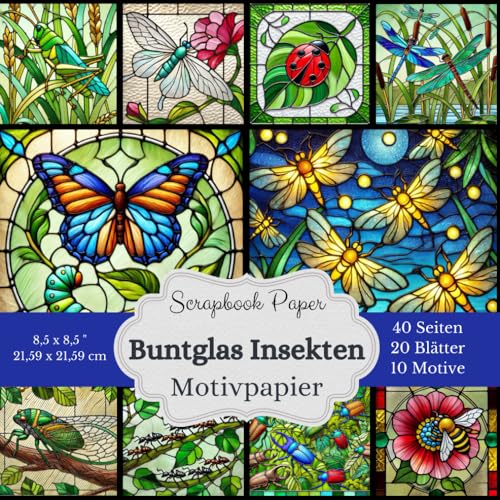 Buntglas-Insekten Scrapbook-Papier: Ein faszinierendes Farbenspiel in Glasoptik: Motivpapier - gebundenes Buch mit 40 seiten Bastelpapier, in 10 ... enthalten, 8,5 x 8,5 Zoll = 21,59 x 21,59 cm