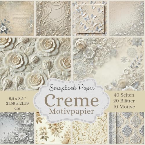 Scrapbook-Papierkollektion in zarten Cremetönen: einer Vielfalt an romantischen und vintage inspirierten Motiven. 20 Bastelpapiere (10 verschiedene ... 2x) Format: 8,5 x 8,5 Zoll (21,59 x 21,59 cm)