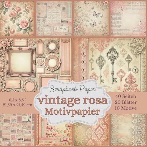 Motivpapier: Zauberhaften Vintage-Rosa Scrapbook-Papierkollektion: 40-seitige Kollektion bietet dir 20 Seiten Bastelpapier in 10 einzigartigen ... Zoll (21,59 x 21,59 cm) für kreatives Basteln