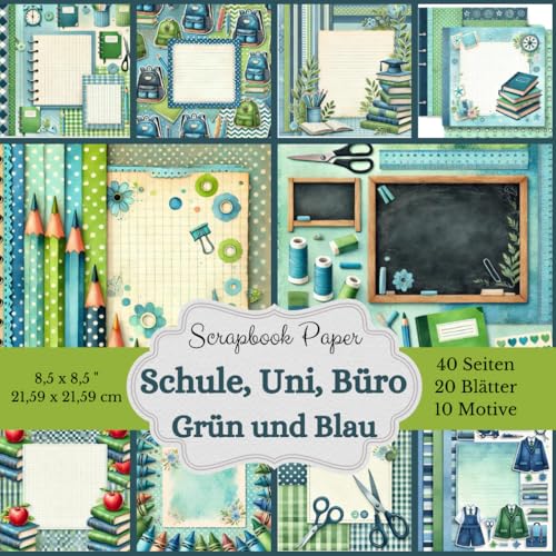 Scrapbook-Papierkollektion in Grün und Blau für Schule & Studium: Seitenanzahl: 40 Seiten (20 Blätter) Größe: 8,5 x 8,5 Zoll (21,59 x 21,59 cm) ... Bastelpapier in Grün-und Blautönen