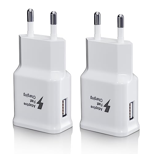 2-Pack USB-laddare Power Socket Adapter Ersättnings Original Snabbladdare Kompatibel med Samsung Galaxy S8 S8 Plus S9 S9 Plus S10 S10 Plus S10e 5G S5 S6 S7 S7 Plus A50 A51 A52 A30 A20 Fold2 Z Flip3