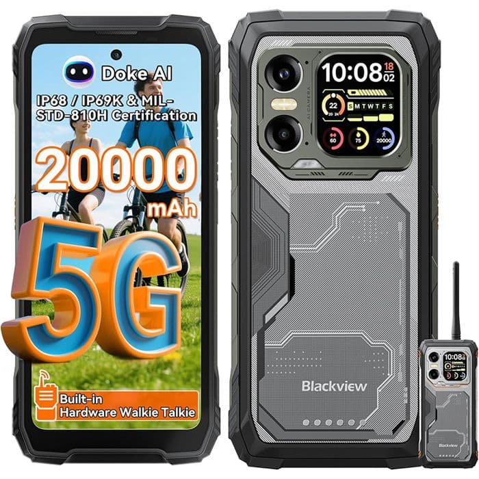Blackview XPLORE 1 Walkie Talkie 5G Bärbar Telefon Oknäckbar 36Go+512Go/2To Android 15 6.78" NFC/AI/Dubbel SIM - Svart
