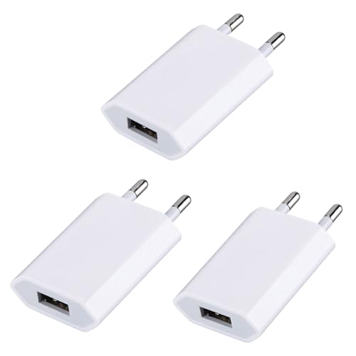 Waytex Set med 3 USB A-laddare, 5 V, 1A, universell USB-nätladdare för iPhone, iPad, Android Smartphone, Smartwatch, Surfplatta, hörlurar, svart