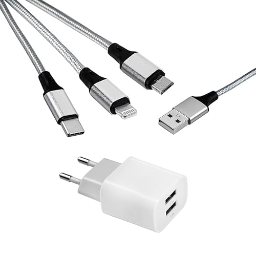 MUTTO Paket Universal 5 V2A/10 W väggladdare med 2 USB-portar + 3 i 1 Multi Universal USB till Micro USB/USB-C/Lightning-laddningskabel Kompatibel med iPhone, Samsung, Huawei, Xiaomi