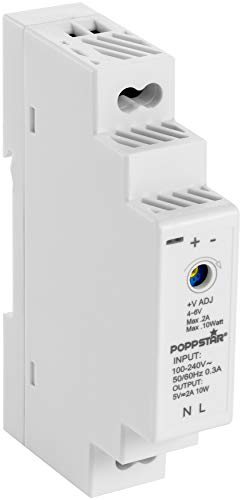 Poppstar transformator för DIN-skena, DIN-skenemontage (Input 100-240 V AC 50/60 Hz, Output 5 V DC 2 A 10 W) 18 * 90 * 58mm, vit