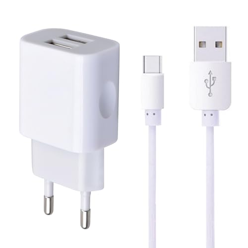 MUTTO Paket Universal väggladdare 5 V2A/10 W med 2 USB-portar + USB-kabel typ C 1 m laddare typ C snabbladdning och synk