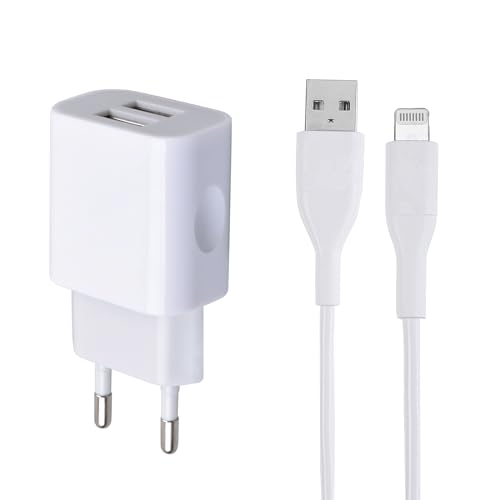 MUTTO 5V2A/10W Universal Wall Charger Pack med 2 USB-portar + USB 2.0 PVC-laddare Datakabel - LIGHTNING 1 meter Vit kompatibel med iPhone