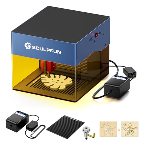 SCULPFUN iCube Pro Laser gravyrmaskin 5 W med luftpump, vaxkakearbetsbord, rökfilter, bärbar lasergraverare laserskärare 10 000 mm/min gravyr, hastighet