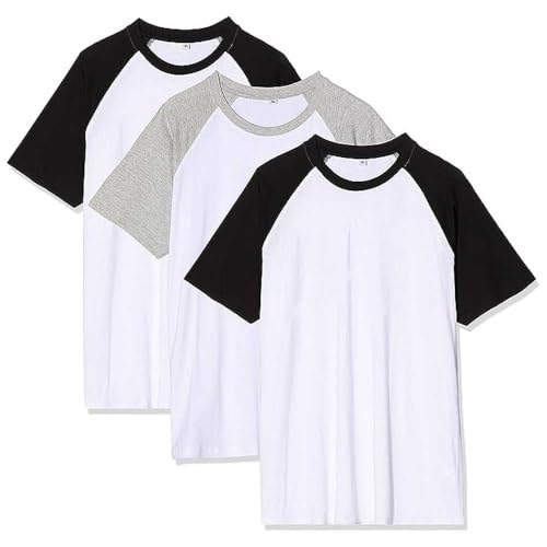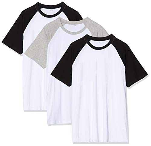 Build Your Brand Mäns t-shirts 3-pack Basic Shirt Multi-Pack för män, överdel med färgsydda ärmar finns i många färger, storlekar S – 5XL, vit/svart, 5XL