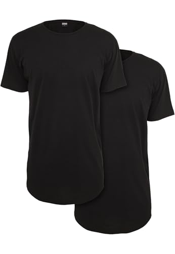 Urban Classics T-shirt för män, 2-pack, formad lång t-shirt, dubbelpack, basic t-shirts för män finns i många färgvarianter, storlekar XS – 5XL, svart, XS
