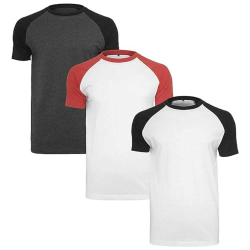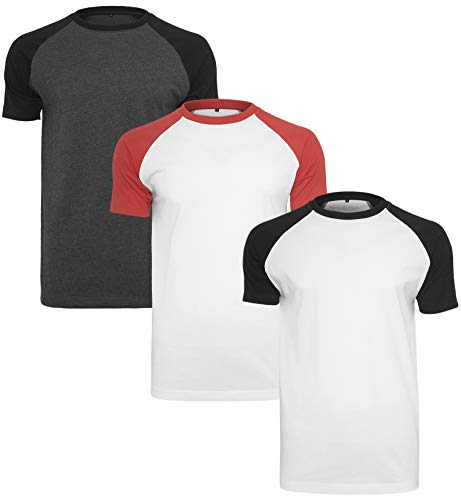 Build Your Brand Mäns t-shirts 3-pack Basic Shirt Multi-Pack för män, överdel med färgsydda ärmar finns i många färger, storlekar S – 5XL, Wht/Blk/Wht/H.grå/Wht/Blk, L