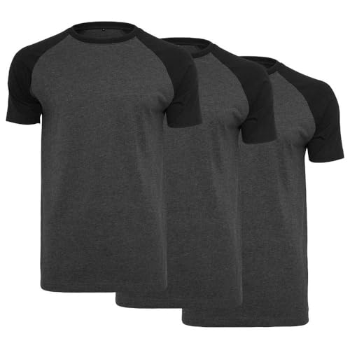 Build Your Brand Mäns t-shirts 3-pack Basic Shirt Multi-Pack för män, överdel med färgsydda ärmar finns i många färger, storlekar S – 5XL, kol/svart, S