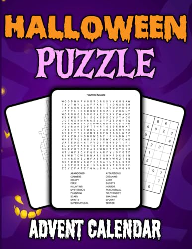 Halloween Puzzle Advent Calendar for Kids Ages 6-12: 31 Days of Fun with Mazes, Word Searches, and Sudoku