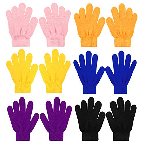 QKURT 6 par magiska handskar, vinterstickade heltäckande fingrar stretchhandskar varma handskar för 5 ~ 13 år gamla barn flickor pojkar, flerfärgad, en storlek