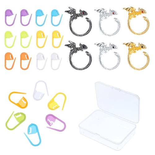 JIEYAO 6 stycken virkringar, justerbar stickad ögla med drakstil metall virkringar med 20 stycken virkade stickmarkeringar virkade ring tillbehör stickade virkade slingor för fingrar