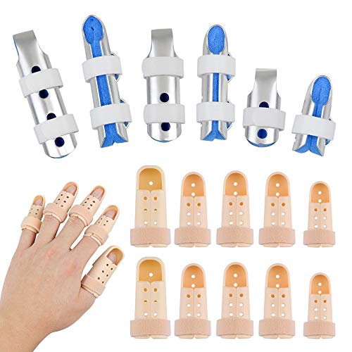 Homgaty 6 stycken fingerskenor för fingrar styvhet och 10 stycken plastfingerskydd fingerstöd stabilisator passar alla fingrar