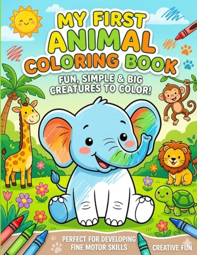 My First Animal Coloring Book: Fun and Easy Animal Illustrations for Kids Ages 3–6: A Cute and Simple Coloring Book with Lions, Elephants, Birds, and ... for Toddlers, Preschoolers & Early Learners!