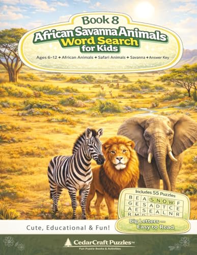 African Savanna Animals Word Search for Kids: 55 Word Searches with Lions, Elephants, Zebras & More | Ages 6–12 | Safari Adventure Puzzle Book