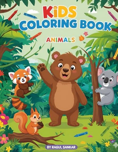 SOLON - 'Animal Kingdom : A Fun Colouring Book for Kids Aged 3 to 6: 15 Super Cute & Easy Animal Coloring Pages for Toddlers, Preschool & Kids Ages 2-5 | Lions, Elephants, Giraffes, and More!