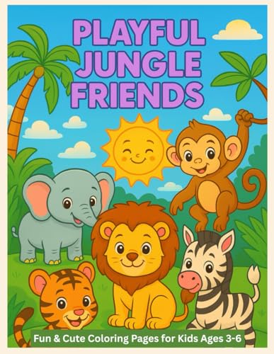 Playful Jungle Friends Coloring Book for Kids Ages 3–6: Cute Safari Animals, Easy Coloring Pages & Fun Early Learning Activities: Adorable Lions, ... | Simple Designs for Toddlers & Preschoolers