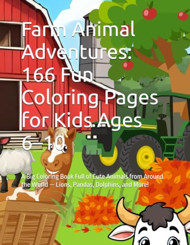 Farm Animal Adventures: 166 Fun Coloring Pages for Kids Ages 6–10: A Big Coloring Book Full of Cute Animals from Around the World — Lions, Pandas, Dolphins, and More!