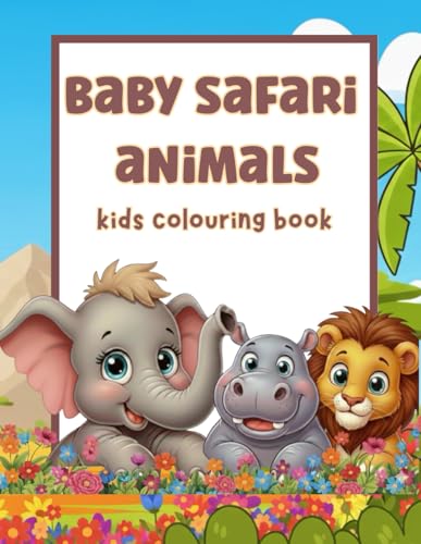 Baby Safari Animals Colouring Book for Kids Ages 3–6: Cute Easy African Animals for Toddlers and Preschoolers: 50 Cute Baby Animals for Kids to Colour - Lions, Elephants, Hippos, Giraffes & More