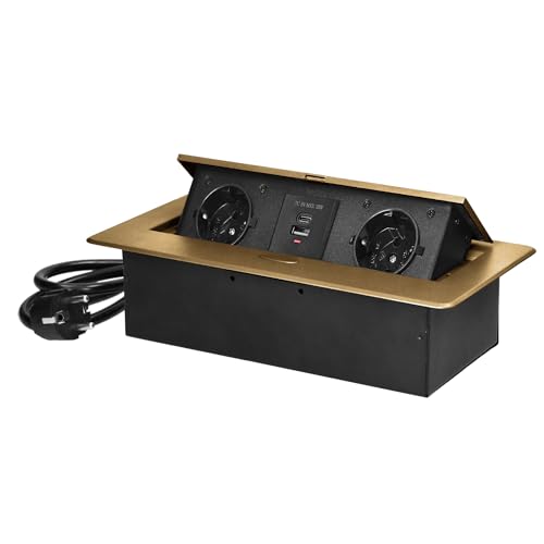 MIRATIC Grenuttag Infällbar med Kabel 1,5m 2x2 Poler + Jord (Schuko) 2x USB (A och C; 5V/3,6A) (guld)