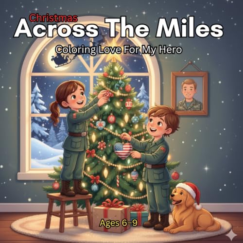 Christmas Across The Miles: Coloring Love For My Hero Ages 6-9: A patriotic and heartwarming Christmas coloring book for military kids missing their deployed mom or dad