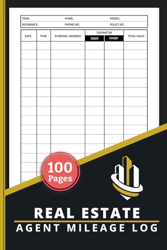 Real Estate Agent Mileage Log: Realtor Work Trip Miles Tracker | Record Your Business Mileage & Get Ready for Taxation | 100 Pages, 6x9 Inches