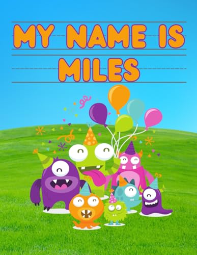My Name Is Miles | Silly Party Monsters | Personalized Tracing Practice Worksheet Workbook | Learn How To Write Your Name | Homeschool Preschool Pre-K | Ages 3-6