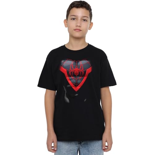 Marvel Spiderman Miles Morales kostym unisex barn t-shirt, Svart, 5-6 År