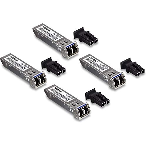 TRENDnet SFP LC-modul med ett läge, 4-pack, TEG-MGBS10/4, för enlägesfiber, avstånd upp till 10 km (6,2 miles), Gigabit SFP, stöder upp till 1,25 Gbps, IEEE 802.3z Gigabit Ethernet, livstidsskydd