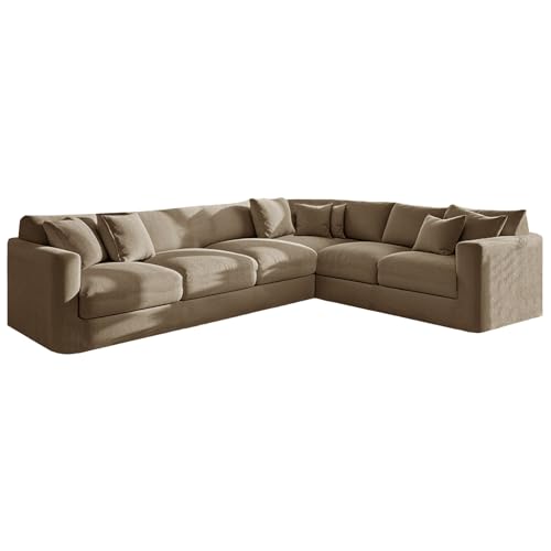 KYJSW L-format hörnsofföverdrag stretch sammet sektionssoffa överdrag 1/5/6/7-sits soffa överdrag mjukt halkfritt möbelskydd (kaki, stort 6-sits-3C2 9 st)
