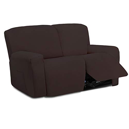 Lättgående 6 delar mikrofiber stretch sektioner vilstol soffa överdrag mjuk anpassad fleece 2-sits soffskydd, tvättbart möbelskydd med elasticitet för barn (vilstol loveseat, choklad