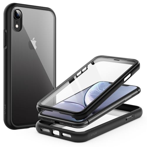 JETech Skal för iPhone XR 6,1 Tum med Inbyggt Repfri Skärmskydd, 360 Grader Robust Hela Kroppen Telefon Case Klar Tillbaka (Svart)
