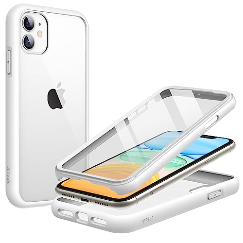 JETech Skal för iPhone 11 6,1 Tum med Inbyggt Skärmskydd Repfri, 360 Grader Robust Hela Kroppen Telefon Case Klar Tillbaka (Vit)