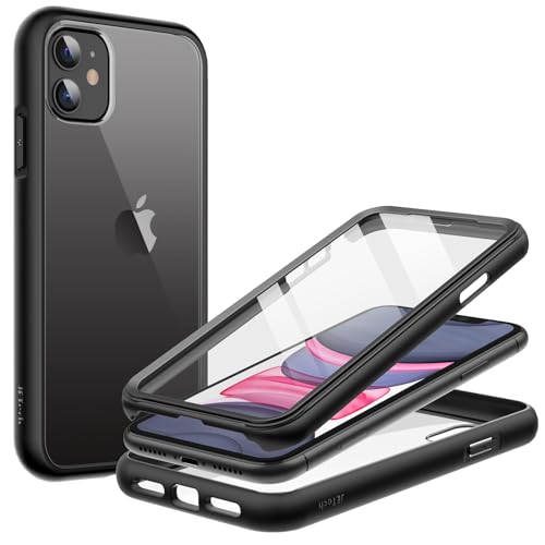 JETech Skal för iPhone 11 6,1 Tum med Inbyggt Skärmskydd Repfri, 360 Grader Robust Hela Kroppen Telefon Case Klar Tillbaka (Svart)