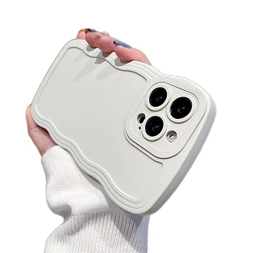 Kompatibel med iPhone 13Pro Max 6.7 tum Full Photo Lins Skyddsfodral för telefon Stötsäker Mjuk Med Söt Curly Enkel Wave Case Vit