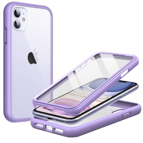 JETech Skal för iPhone 11 6,1 Tum med Inbyggt Skärmskydd Repfri, 360 Grader Robust Hela Kroppen Telefon Case Klar Tillbaka (Lila)