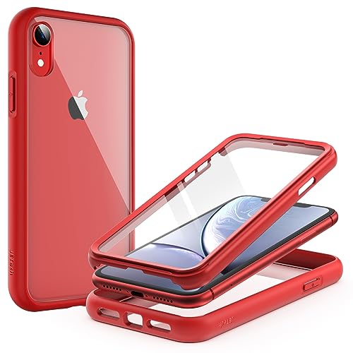 JETech Skal för iPhone XR 6,1 Tum med Inbyggt Repfri Skärmskydd, 360 Grader Robust Hela Kroppen Telefon Case Klar Tillbaka (Röd)