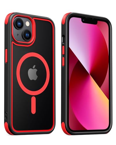 MobNano Magnetiskt fodral för iPhone 13/14 6,1 tum [Stödjer MagSafe trådlös laddning] stötsäkert stötfångarskydd för telefon - Svart/Röd