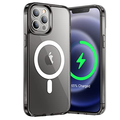 JETech Magnetisk Skal för iPhone 12 Pro Max 6,7 Tum för MagSafe Trådlös Laddning, Stötskyddad Telefon Bumper Case, Repfri Klar Tillbaka (Svart)