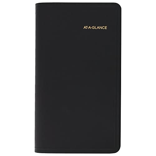 AT-A-GLANCE 2023 veckokalender, mötesbok, 3-1/4 tum x 6-1/4 tum, fickstorlek, påfyllningsbar, telefon/adress, svart (7000805)