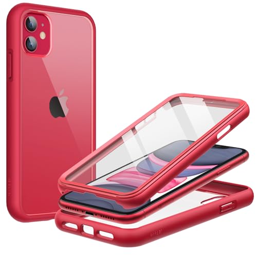 JETech Skal för iPhone 11 6,1 Tum med Inbyggt Skärmskydd Repfri, 360 Grader Robust Hela Kroppen Telefon Case Klar Tillbaka (Röd)