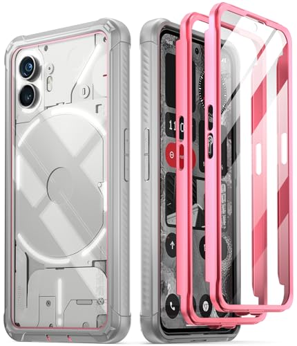 Poetiskt skyddsfodral kompatibelt med ingenting telefon 2 6,7 tum [20 FT mil-grad dropptestad], heltäckande hybrid stöttåligt stötsäkert stötskydd fodral med inbyggt skärmskydd, rosa/klart