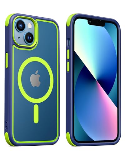 MobNano Magnetiskt fodral för iPhone 13/14 6,1 tum [Stödjer MagSafe trådlös laddning] stötsäkert stötfångarskydd för telefon - Blå