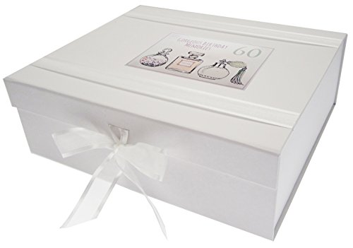 White Cotton Cards påminnelselåda för 60-årsdagen, stor, parfymflaskor, vit